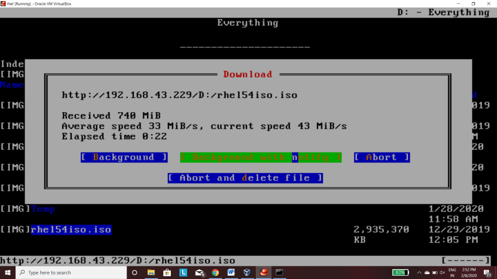 how to connect window with redhat system and transfer data files with window ip